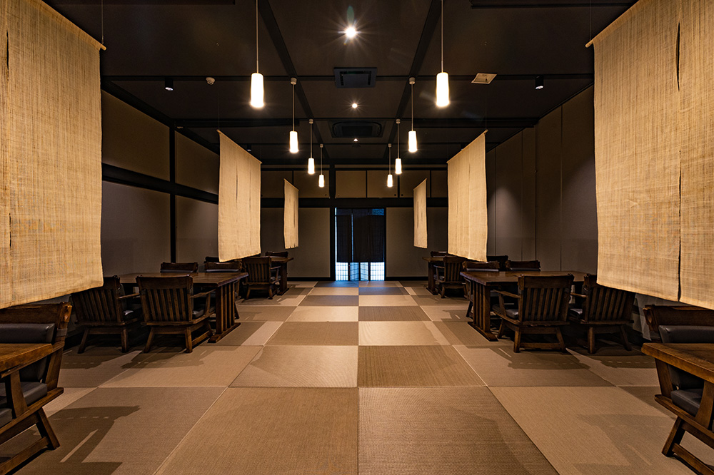 照明の照度・空間デザインにこだわり抜いた落ち着きのある食事処で、