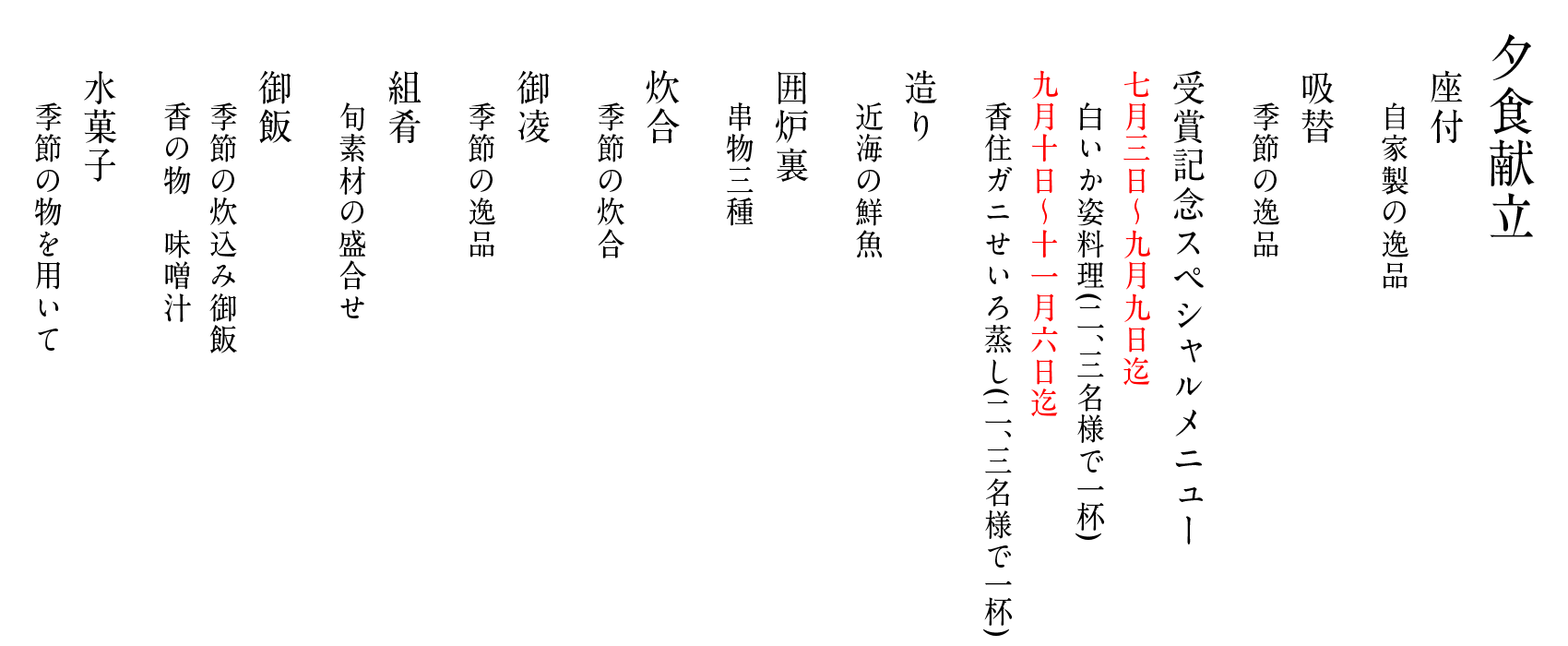 - 御一人様26,000円〜34,800円(消費税込)+入湯税150円